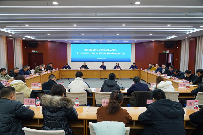 為進一步規范全區消防技術服務機構市場秩序,促進消防技術服務市場健康發展,確保消防安全形勢持續穩定,2024年1月19日上午,新疆消防救援總隊在烏魯木齊組織召開了社會消防技術服務機構座談會。會議由新疆消防救援總隊法制與社會消防工作處處長董芳芳主持,新疆消防救援總隊黨委委員、副總隊長曹旭東出席會議并講話,新疆消防協會秘書長閆懷宣、總隊法制與社會消防工作處工作人員及30家社會消防技術服務機構代表參加會議。