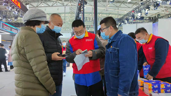 新疆電機(jī)工程學(xué)會會員單位國網(wǎng)烏魯木齊供電公司黨員服務(wù)隊(duì)員在新疆國際會展中心車展現(xiàn)場設(shè)置活動展臺,同步宣傳購車裝充電樁“一站式”服務(wù)