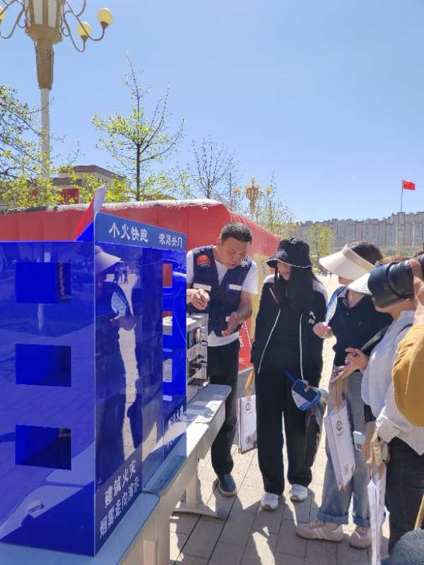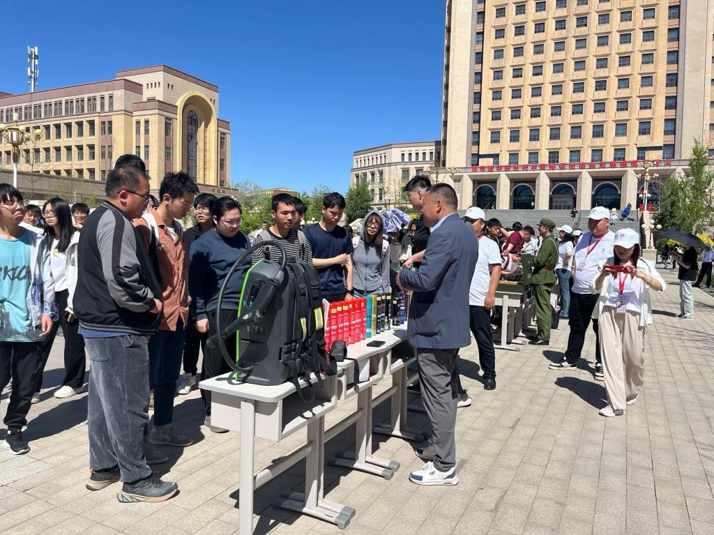 在室外活動(dòng)現(xiàn)場(chǎng),新疆消防協(xié)會(huì)、藍(lán)天救援隊(duì)、新疆人防協(xié)會(huì)、新疆氣象學(xué)會(huì)、北京衛(wèi)民安消防教育咨詢中心新疆工作站、新疆火韻精雕文化傳媒有限公司、浙江睦田消防科技開發(fā)有限公司新疆辦事處等參加單位通過發(fā)放宣傳資料、布置宣傳展板、現(xiàn)場(chǎng)演示和解答咨詢等形式向師生講解傳授了高效的緊急避險(xiǎn)和應(yīng)急處置能力,并就救援裝備如何正確使用進(jìn)行專業(yè)講解,現(xiàn)場(chǎng)氣氛熱烈。
