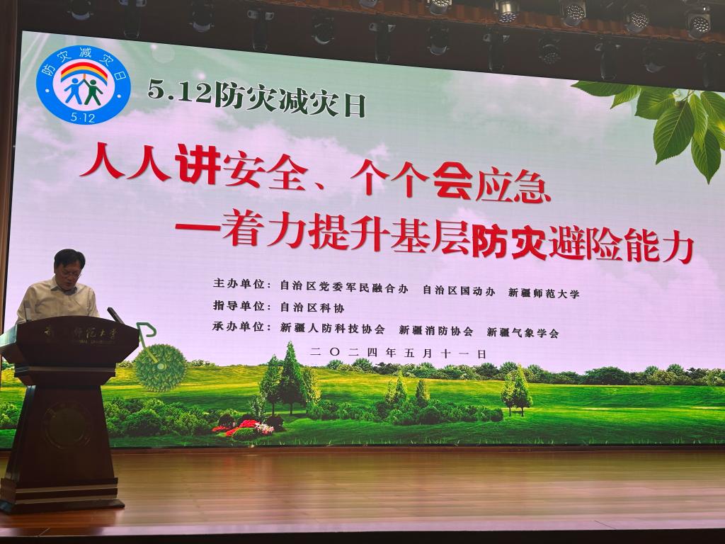 今年5月12日是我國(guó)第16個(gè)“全國(guó)防災(zāi)減災(zāi)日”,5月11日上午,自治區(qū)科協(xié)、自治區(qū)黨委軍民融合辦、自治區(qū)國(guó)動(dòng)辦、新疆消防協(xié)會(huì)、新疆人防協(xié)會(huì)、新疆氣象學(xué)會(huì)等單位在新疆師范大學(xué)開展了“5.12”防災(zāi)減災(zāi)主題宣傳活動(dòng)。自治區(qū)科協(xié)黨組成員、副主席姑麗娜爾·吾布力,自治區(qū)黨委軍民融合辦、自治區(qū)國(guó)動(dòng)辦副主任解俊杰及新疆師范大學(xué)師生代表300多人參加了活動(dòng)。