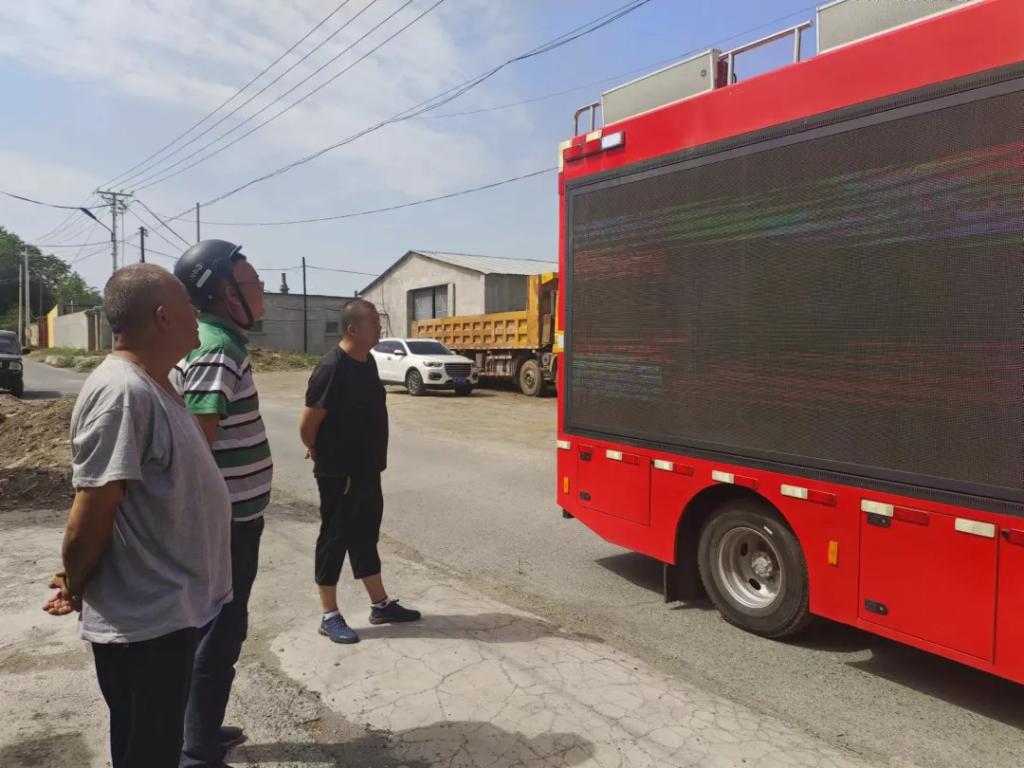 支隊借助“村村通”大喇叭形式靈活、收聽面廣、傳播速度快的優勢,發動各村隊將消防安全知識每日進行播報,掀起了村民學習消防安全知識的熱潮。同時,充分利用消防宣傳車車載LED大屏,吸引村民觀看,讓村民們在日常生活中潛移默化的增強消防安全意識,真正實現“小宣傳”產生“大效應”。