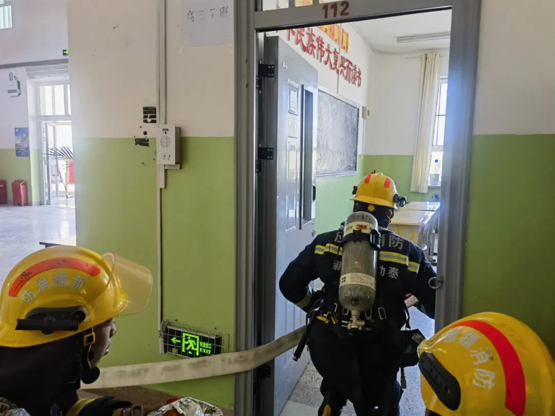 演練開始前,帶隊干部組織全體指戰員在單位消防負責人的帶領下,詳細對學校的建筑結構、布局特點、重點部位、疏散通道、內部消防設施等重點情況進行熟悉,同時認真檢查了學校的消防設施是否完整好用,安全出口是否暢通,檢查出的安全隱患當即督促工作人員進行整改,隨后組織開展實戰化演練,根據滅火救援預案和站級整建制作戰力量編成展開,各單元分工明確、密切配合深入開展滅火救援實戰演練。指戰員之間配合默契,動作準確迅速,充分體現出了全體指戰員過硬的素質和良好的戰斗作風,確保了此次演練工作的圓滿完成。