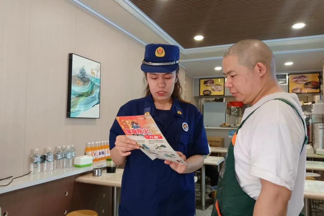 期間,宣傳人員重點針對場所用火用電用油用氣是否符合要求、疏散通道是否堆放雜物、消防設施器材是否完好有效等情況進行排查,積極幫助各商戶整改火災隱患,指導場所人員如何查找火災隱患以及消防設施器材的日常檢查和使用,并叮囑場所人員不要違規使用明火、不私拉亂接電線、不隨意堆放雜物占用消防通道,牢記消防安全知識,養成良好的消防安全習慣。
