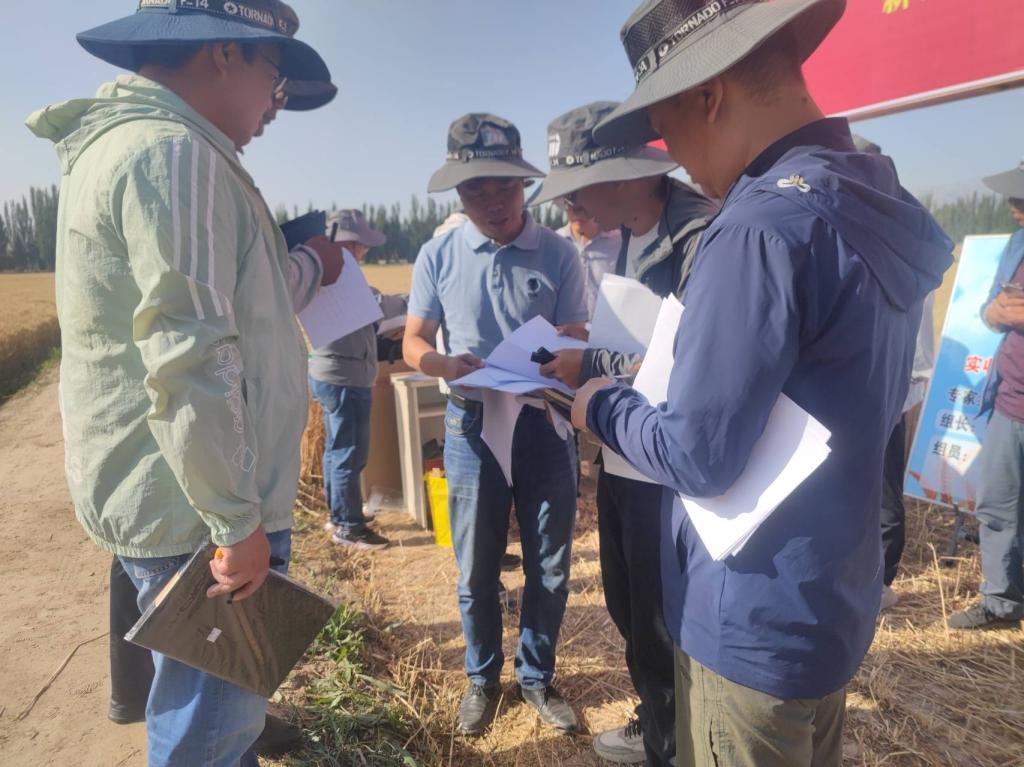 近日,新疆農業科學院組織邀請西北農林科技大學、南京農業大學、新疆農業大學、中國農業科學院等科研院所的國內農業專家,組成測產專家組,對新疆原子能農學會依托單位新疆農業科學院核技術生物技術研究所小麥生物育種與遺傳生理創新團隊和新疆金天山農業科技有限責任公司在喀什地區英吉沙縣良種場單產提升千畝示范田——早熟優質中強筋新品種“中麥578”,開展高產創建實收測產工作。