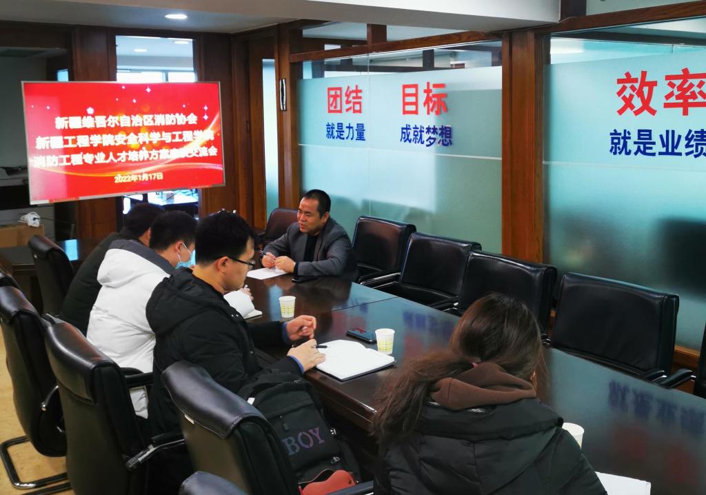 2022年1月17日上午,新疆工程學(xué)院消防工程系主任韋剛帶領(lǐng)調(diào)研組到新疆消防協(xié)會(huì)走訪調(diào)研。協(xié)會(huì)黨支部書記、秘書長(zhǎng)閆懷宣等同調(diào)研組一行舉行了座談交流。