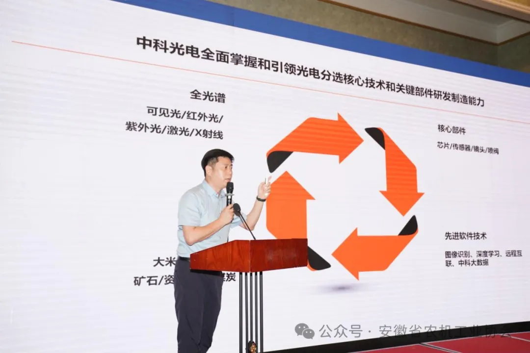 同時本次推介會特別邀請了中聯(lián)農(nóng)業(yè)機械股份有限公司、中科光電色選機械有限公司、中電科蕪湖鉆石飛機制造有限公司、合肥佳富特機器人科技有限責任公司、蚌埠依愛電子科技有限責任公司和安徽云龍糧機有限公司六家省內(nèi)農(nóng)機領(lǐng)軍企業(yè)進行宣傳推介。他們展示了各自的最新創(chuàng)新成果和前沿技術(shù),產(chǎn)品涵蓋了種植、收獲和加工等方面,充分展現(xiàn)了安徽省農(nóng)機行業(yè)的輝煌成就和廣闊前景。
