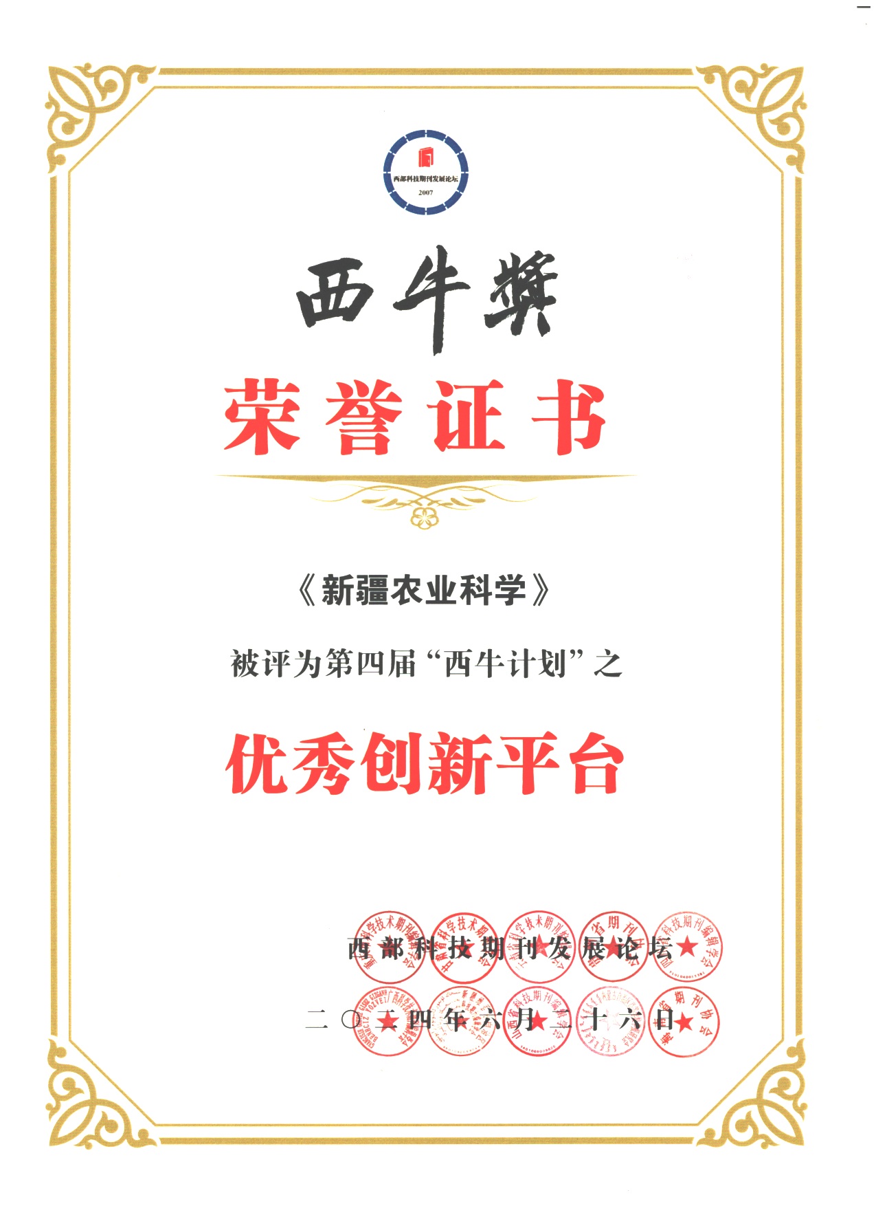 開幕式上進行了第四屆“西牛計劃”入選項目發布儀式。自治區科協資助期刊《新疆農業科學》被評為第四屆“西牛計劃”之精品中文科技期刊、優秀創新平臺;我刊編輯的論文《提升省級農業科技期刊質量及影響力數字化創新模式的研究與實踐》《基于CNKI的高校科技期刊發表論文文獻計量分析——以<新疆農業科學>刊登新疆農科院經作所為例》《基于CNKI的高校科技期刊發表論文文獻計量分析——以<新疆農業科學>刊登新疆農科院園藝所為例》被評為第四屆“西牛計劃”之優秀編輯學論著。高水平科技期刊不僅是學術交流和知識傳播的重要平臺,更是推動科技創新和產業發展的關鍵力量。《新疆農業科學》也在不斷探索和創新科技期刊發展的新模式和新路徑,推動期刊與新質生產力的深度融合,為實現我區農業高質量發展奠定堅實的基礎。