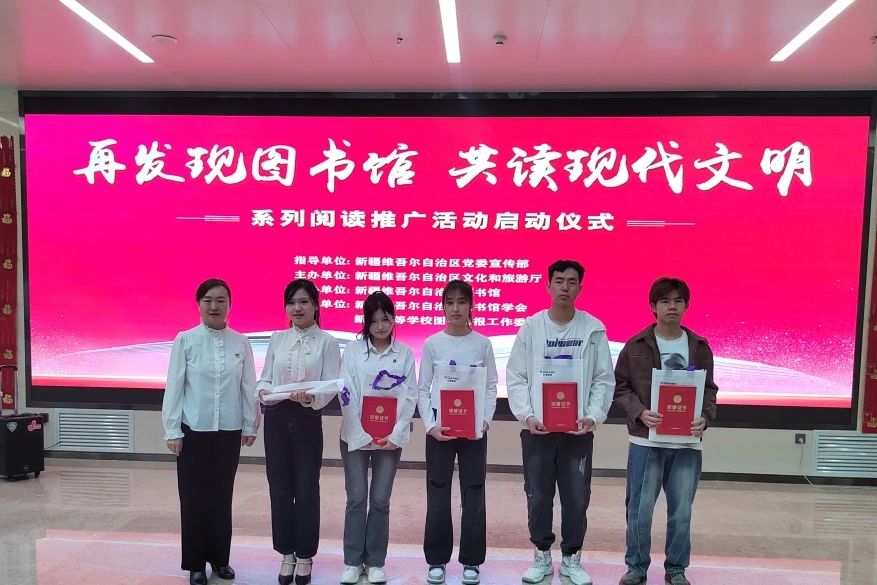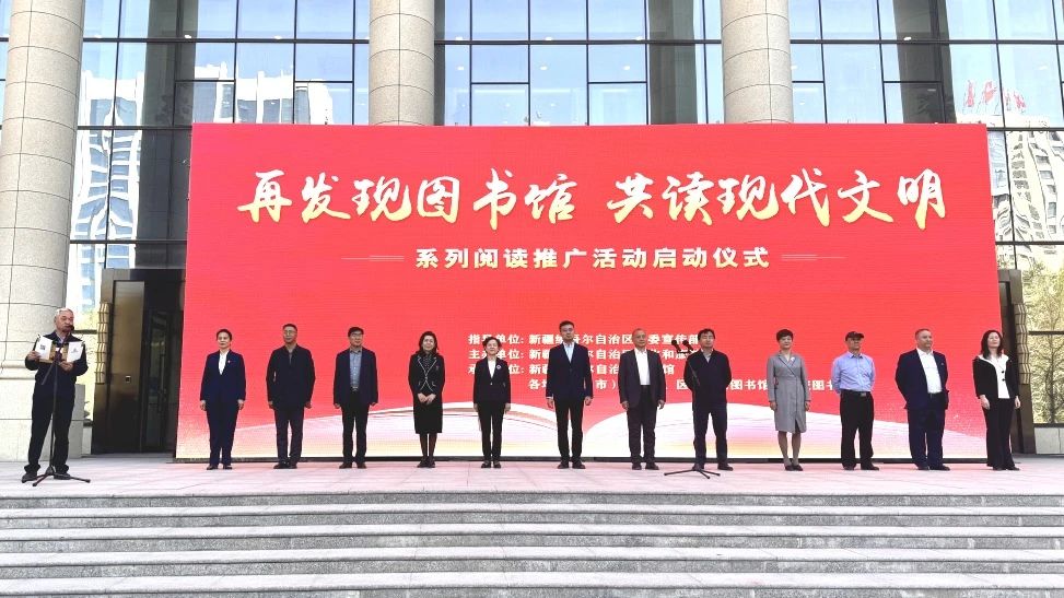 4月23日,“再發現圖書館 共讀現代文明”系列閱讀推廣活動啟動儀式在新疆圖書館正式啟動。活動由自治區黨委宣傳部指導,自治區文化和旅游廳主辦,新疆地區各級公共、高校、科研院所圖書館聯合舉辦,新疆圖書館設立主會場,新疆大學圖書館、哈密市圖書館、和田地區圖書館、塔城地區圖書館、和靜縣東歸圖書館、富蘊縣圖書館、九州通藥業等設分會場,全疆各地圖書館同步拉開2024年全民閱讀帷幕。
