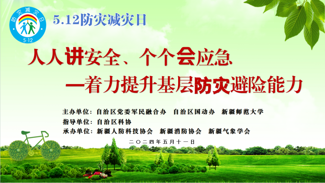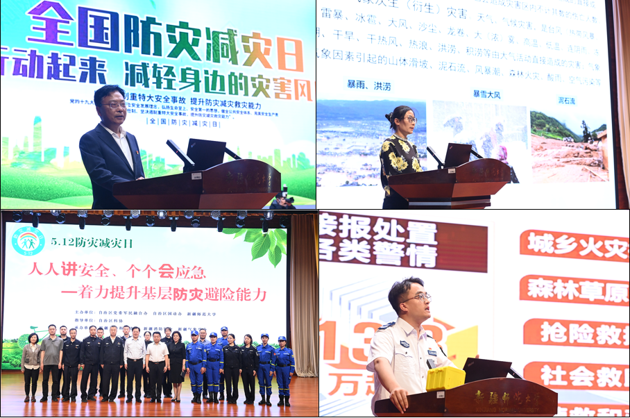 5月11日上午,自治區(qū)黨委軍民融合辦、自治區(qū)國(guó)動(dòng)辦聯(lián)合新疆師范大學(xué)、新疆人防協(xié)會(huì)、新疆消防協(xié)會(huì)、新疆氣象學(xué)會(huì),在新疆師范大學(xué)溫泉校區(qū)舉辦了以“人人講安全、個(gè)個(gè)會(huì)應(yīng)急——著力提升基層防災(zāi)避險(xiǎn)能力”為主題的“5·12”防災(zāi)減災(zāi)日宣傳活動(dòng)。