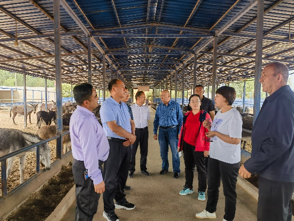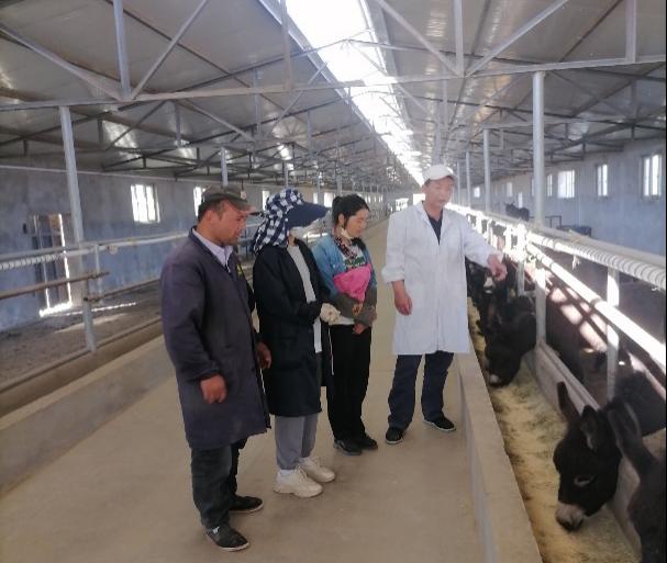 5月15日,托乎提·阿及德研究員、肖海霞研究員會同喀什澤普縣的新疆金胡楊藥業(yè)有限公司張建玲董事長、新疆金胡楊牧業(yè)有限公司宋智輝總經理趕赴和田墨玉縣,對前期調研交流過的墨玉縣托格拉亞畜牧養(yǎng)殖農民專業(yè)合作社進行回訪、洽談合作,當?shù)剜l(xiāng)黨委書記王天喜,村第一書記趙余山,村黨支部書記、副鎮(zhèn)長吾布力·玉努斯,合作社負責人非常重視。在對合作社驢養(yǎng)殖場進行全面考察后,與會人員就該合作社原料輸出、提高養(yǎng)殖戶養(yǎng)殖效益、新疆特色驢產業(yè)生產模式等問題進行了溝通交流與探討。張建玲董事長現(xiàn)場表示,希望能與合作社形成產業(yè)聯(lián)盟,由合作社供應其企業(yè)驢產品加工原料,共建“企業(yè)+合作社+農戶”模式,共同促進農企增收增效。