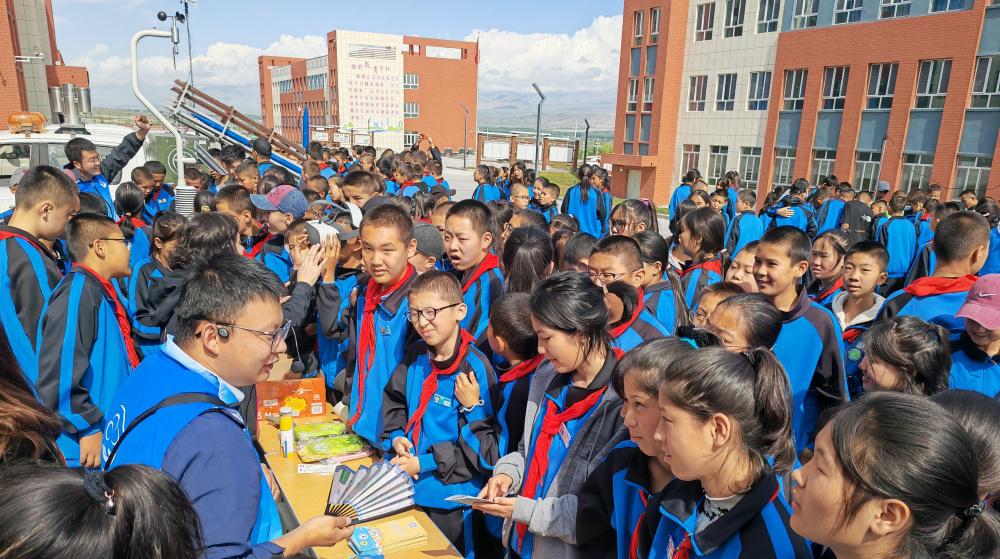 活動中,新疆氣象學會為溫泉縣初級中學“星空校園氣象站”揭牌,并捐贈了氣象科普圖書。
