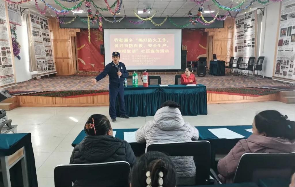 培訓對農村火災危險性、常見隱患、可采取的防火措施結合消防法律法規等幾個方面進行深入淺出的詳細講解,著重強調基層末端人員消防安全意識淡薄、農村木質建筑火災負荷較大、風險點較多的因素點,并通過播放典型農村火災案例警示教育片,直觀加深了各村、小組參訓代表對火災防控的認識,提升了排查、發現火災隱患的能力和水平。理論培訓結束后,組織參訓群眾參觀了喬勒潘鄉消防工作站,隨后走進居民家中實地講解了家庭常見火災隱患、家庭用火用電注意事項以及家庭常備消防器材使用方法,為今后基層消防工作的開展指明了方向,鋪平了道路。