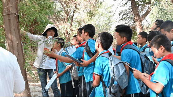 在活動中,通過調(diào)動五感,同學(xué)們在“荒漠探寶單”的指引下,近距離觀察和感受荒漠植物,深入理解植物在干旱酷熱的荒漠環(huán)境中展現(xiàn)出的獨特形態(tài)與生存策略之間的密切關(guān)系。