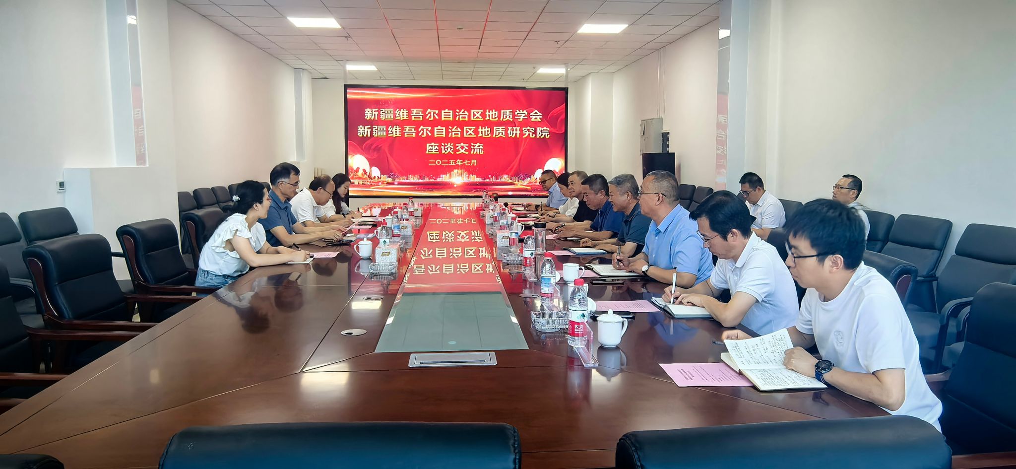7月8日,新疆地質學會理事長陳維斌一行4人與新疆地質局黨組成員、地質研究院黨委書記、副院長三金柱等人進行了座談交流。