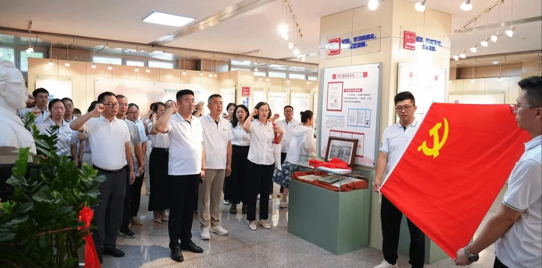 在科學(xué)家精神教育基地,全體黨員面向黨旗莊嚴(yán)站立,馬文新高工領(lǐng)誓,重溫入黨誓詞。鏗鏘有力的誓言響徹會(huì)場(chǎng),再次喚醒黨員身份意識(shí),激發(fā)為黨和國(guó)家事業(yè)奮斗的責(zé)任感與使命感。