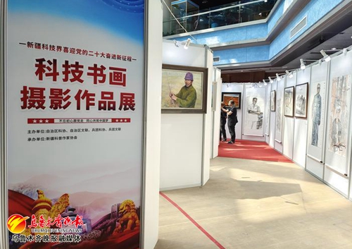 在新疆科技館一樓展廳,一幅幅攝影、繪畫及書法作品有序排列,生動形象地反映了重大的科學事件和人物。當日啟動的科學與藝術作品展中,展出了從全疆廣大科技工作者和書法愛好者中征集并遴選的150余幅以科學與藝術為主題的書畫作品,作品特別聚焦新疆近年來在科技創新和科技引領高質量發展中取得的新成就。