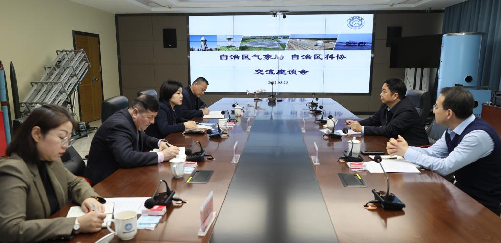 3月23日,自治區(qū)科協(xié)黨組書(shū)記、副主席王光強(qiáng)一行出席“世界氣象日”活動(dòng)后,與新疆氣象局黨組副書(shū)記、局長(zhǎng)、新疆氣象學(xué)會(huì)理事長(zhǎng)崔彩霞進(jìn)行座談交流,新疆氣象學(xué)會(huì)秘書(shū)長(zhǎng)伊里哈木·卡德?tīng)柤靶陆畾庀缶窒嚓P(guān)內(nèi)設(shè)機(jī)構(gòu)負(fù)責(zé)人參加座談。