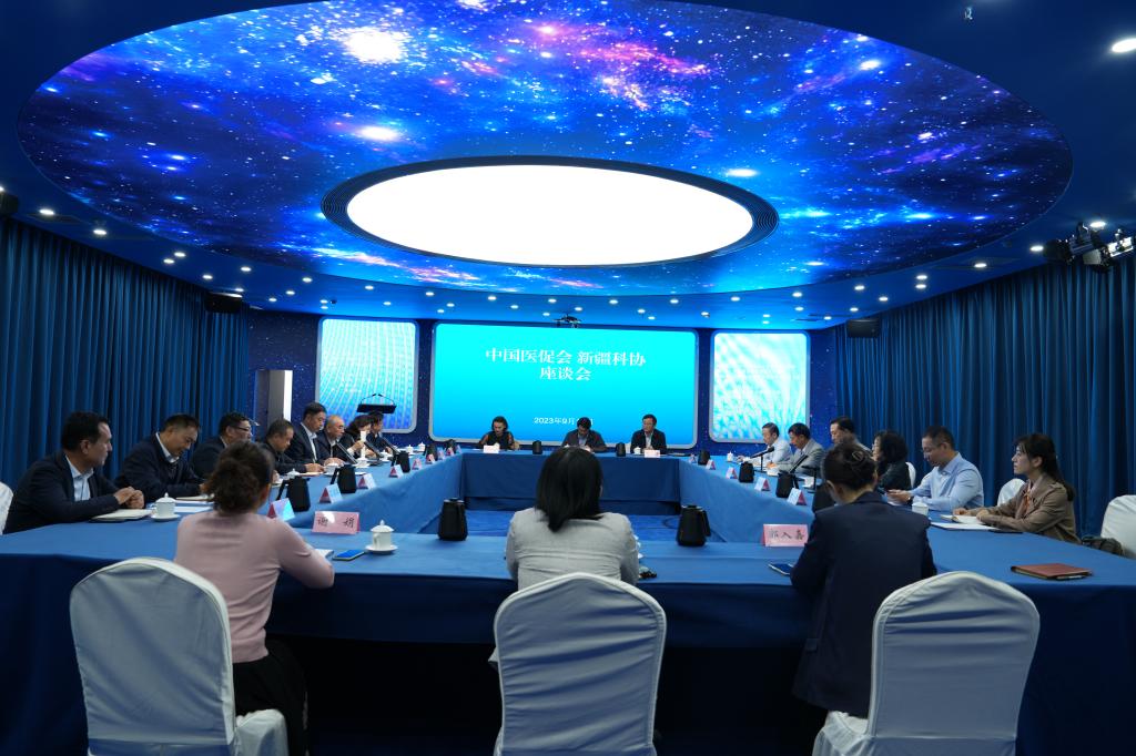 中國醫(yī)療保健國際交流促進(jìn)會(huì)副會(huì)長韓曉芳,自治區(qū)科協(xié)黨組成員、副主席姑麗娜爾·吾布力,二級(jí)巡視員李永晟及自治區(qū)科協(xié)、新疆醫(yī)科大學(xué)相關(guān)部門負(fù)責(zé)同志參加座談。