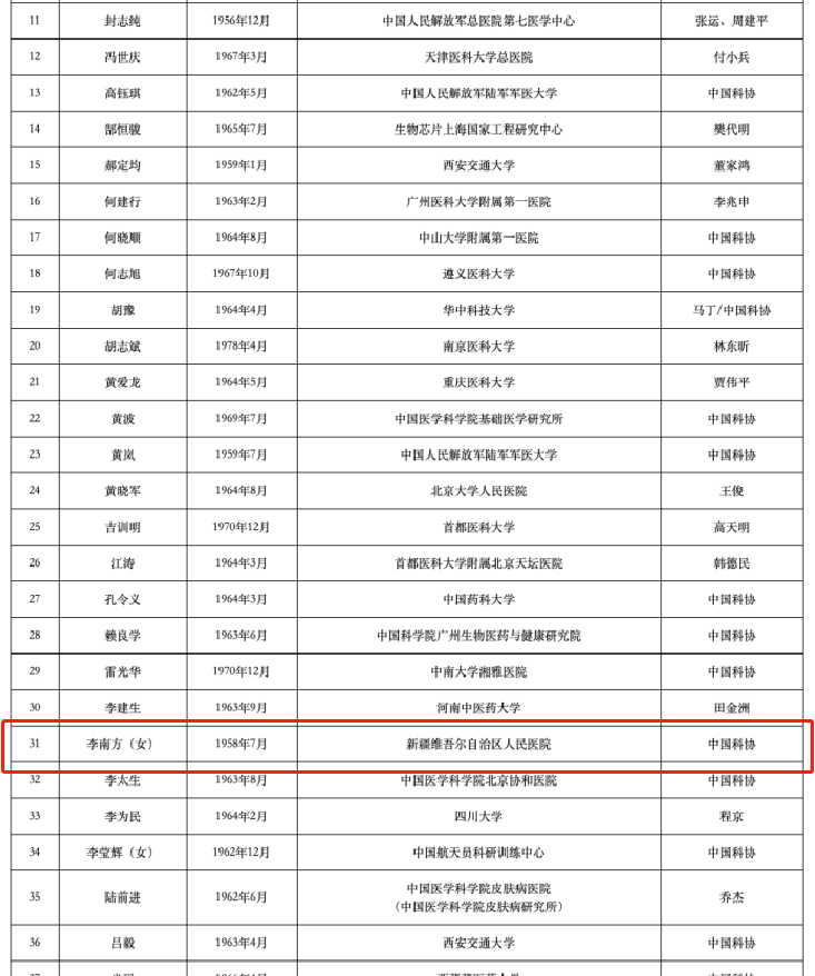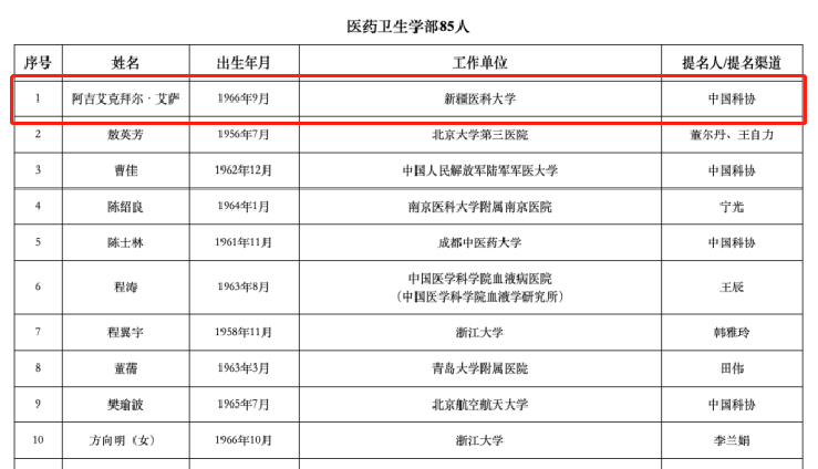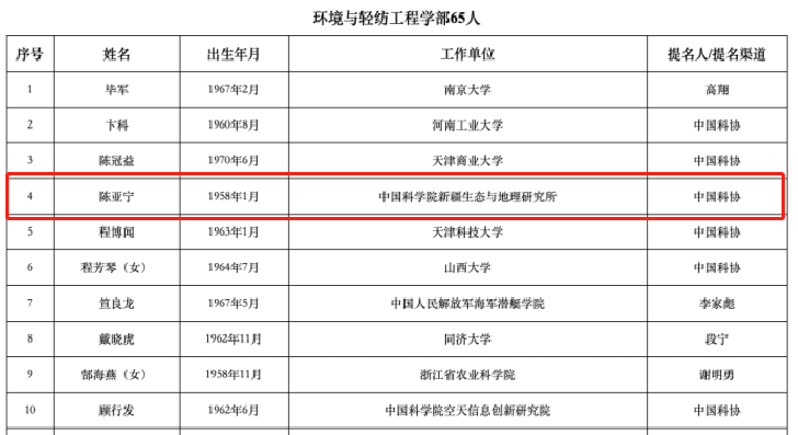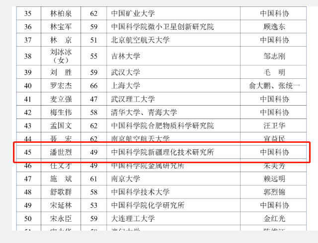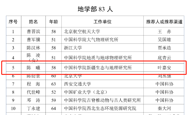 新疆共有6人入選,分別是:由葉嘉安院士推薦的陳曦,新疆科協(xié)推薦的潘世烈,入選2023年中國(guó)科學(xué)院院士增選有效候選人。新疆科協(xié)推薦的王維慶、陳亞寧、阿吉艾克拜爾·艾薩、李南方入選2023年中國(guó)工程院院士增選有效候選人。(以上排名不分先后)