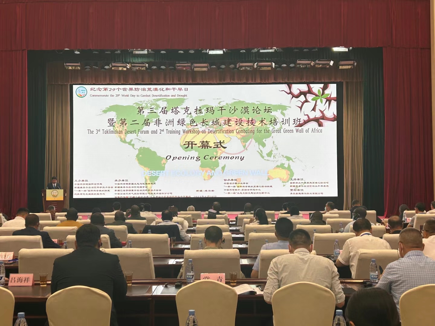 6月10日,第三屆塔克拉瑪干沙漠論壇暨非洲綠色長城建設(shè)技術(shù)培訓(xùn)班在美麗的“梨城”庫爾勒市舉行。來自中國、埃塞俄比亞、毛里塔尼亞、尼日利亞、烏茲別克斯坦、哈薩克斯坦、沙特阿拉伯等14個(gè)國家的180余位荒漠化防治領(lǐng)域國內(nèi)科研機(jī)構(gòu)、國際組織和企業(yè)代表參加了本次論壇。開幕式由中國科學(xué)院新疆生態(tài)與地理研究所副所長吉力力·阿不都外力研究員主持。