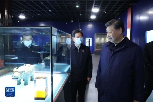28日下午,習近平考察了位于安陽市西北郊洹河南北兩岸的殷墟遺址。殷墟是我國歷史上第一個文獻可考、為考古發掘所證實的商代晚期都城遺址。習近平步入殷墟博物館,仔細觀摩青銅器、玉器、甲骨文等出土文物。隨后,習近平來到車馬坑展廳,察看商代畜力車實物標本和道路遺跡。他指出,殷墟出土的甲骨文為我們保存3000年前的文字,把中國信史向上推進了約1000年。殷墟我向往已久,這次來是想更深地學習理解中華文明,古為今用,為更好建設中華民族現代文明提供借鑒。中國的漢文字非常了不起,中華民族的形成和發展離不開漢文字的維系。在這方面,考古事業居功至偉。考古工作要繼續重視和加強,繼續深化中華文明探源工程。中華文明源遠流長,從未中斷,塑造了我們偉大的民族,這個民族還會偉大下去的。要通過文物發掘、研究保護工作,更好地傳承優秀傳統文化。習近平強調,中華優秀傳統文化是我們黨創新理論的“根”,我們推進馬克思主義中國化時代化的根本途徑是“兩個結合”。我們要堅定文化自信,增強做中國人的自信心和自豪感。