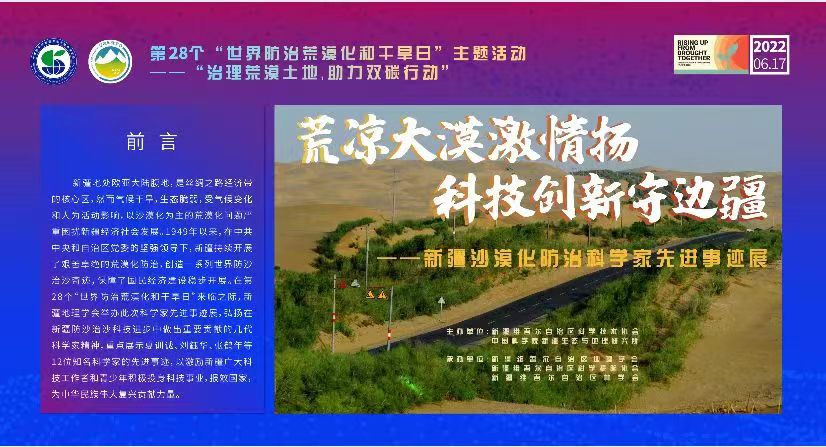 在第28個世界防治荒漠化與干旱日之際,新疆科協、中科院新疆生態與地理研究所、新疆地理學會、新疆科學探險協會等單位聯合組織開展了“治理荒漠土地,助力雙碳行動”主題活動日,以舉辦塔克拉瑪干沙漠論壇、防沙治沙科學家先進事跡展、多媒體信息平臺全面展示、新疆自然博物館專題展等多種形式,研討交流世界荒漠化防治科技新進展,宣傳中國生態文明建設新成效,弘揚新疆防沙治沙科學家精神,全面提升公眾綠色發展意識。