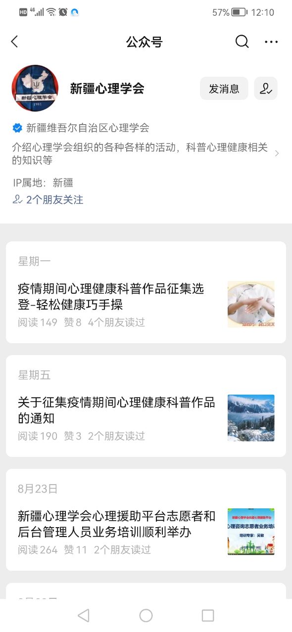 自本輪疫情發(fā)生以來(lái),新疆心理學(xué)會(huì)積極發(fā)揮心理學(xué)工作者的專業(yè)優(yōu)勢(shì),及時(shí)與中國(guó)心理學(xué)會(huì)新疆心理督導(dǎo)點(diǎn)取得聯(lián)系,迅速組織起30余人的心理援助志愿者服務(wù)隊(duì)伍,通過(guò)多種途徑,為我區(qū)群眾及時(shí)提供科學(xué)有效的公益心理疏導(dǎo)服務(wù),取得了良好的效果,受到廣泛好評(píng)。