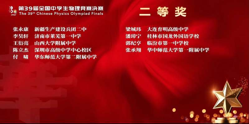 2022年11月7日,第39屆全國(guó)中學(xué)生物理奧林匹克競(jìng)賽決賽在湖北武漢市閉幕。在全國(guó)決賽中新疆代表隊(duì)2名學(xué)生獲得全國(guó)二等獎(jiǎng)(銀牌),8名學(xué)生獲得全國(guó)三等獎(jiǎng)(銅牌),取得了該項(xiàng)競(jìng)賽舉辦以來(lái)新疆歷史最好成績(jī)。