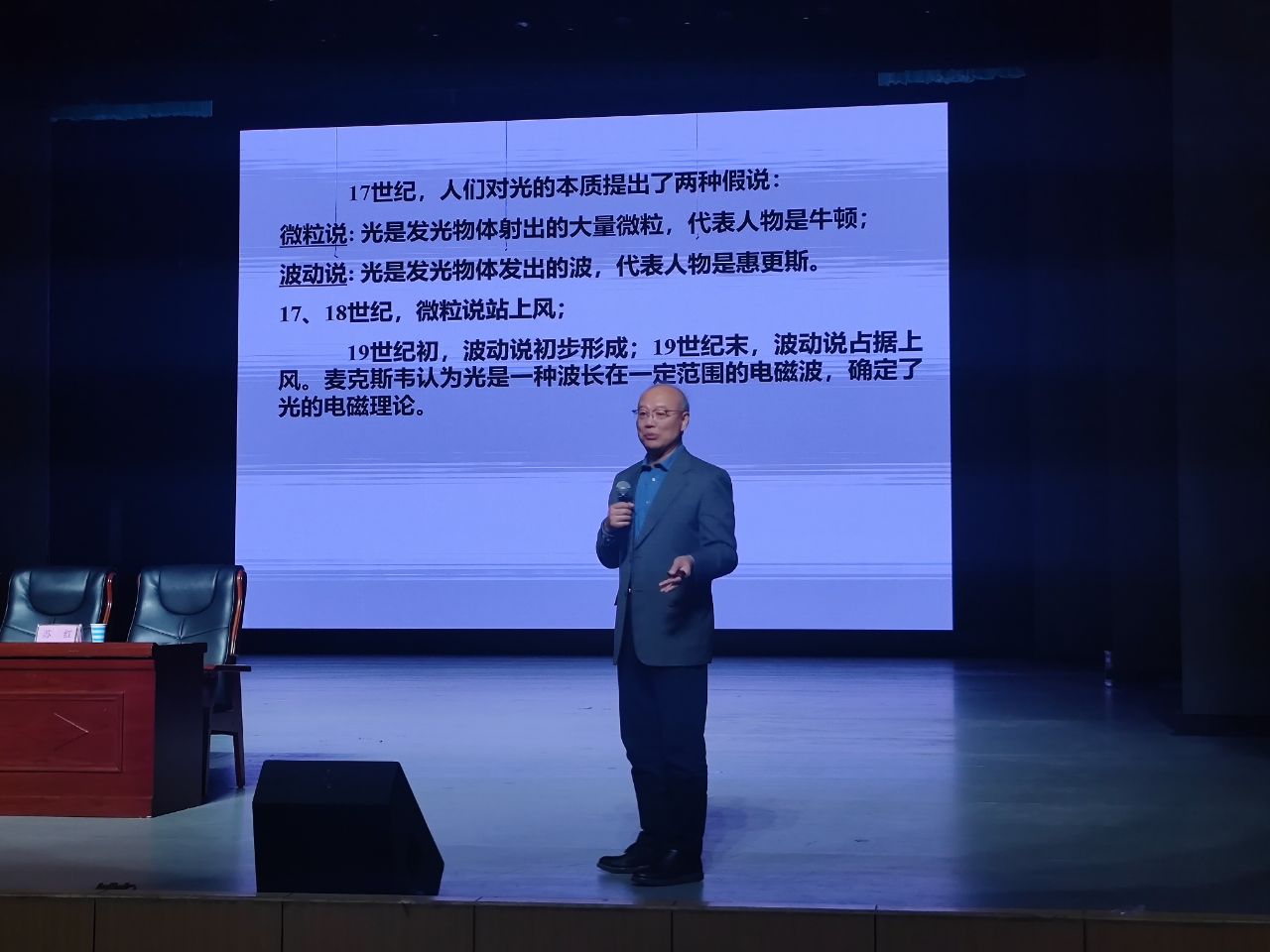 王恩哥院士從“物理學研究什么”這一問題出發,告訴同學們物理是一門不斷改變人類生活和推動社會進步的學科。隨后,他就物理學的發展歷史進行了詳細闡述,介紹了系列經典研究問題,生動講述了物理學家們探索問題的精彩故事。他表示,物理學經歷著不斷探索、不斷創新的過程,在研究過程中,新發現的問題要遠多于已解決的問題,正是發現、解決問題的過程,推動著人類科技不斷進步。他勉勵同學們,在學習生活和探索之路上,同學們必然會經歷一系列的困難和挑戰,但只要樹立信心,保持堅韌不拔的科學探究精神,勇于創新和探索,那么我們一定能夠在科學探究的路上取得成功。希望同學們能夠在之后的學習和生活中不斷努力,勇攀科學高峰,成為社會的棟梁和引領人才。