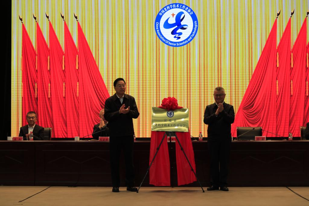 會(huì)議在莊嚴(yán)的國(guó)歌聲中拉開序幕,張國(guó)梁和彭康共同為富蘊(yùn)縣老科學(xué)技術(shù)工作者協(xié)會(huì)揭牌。