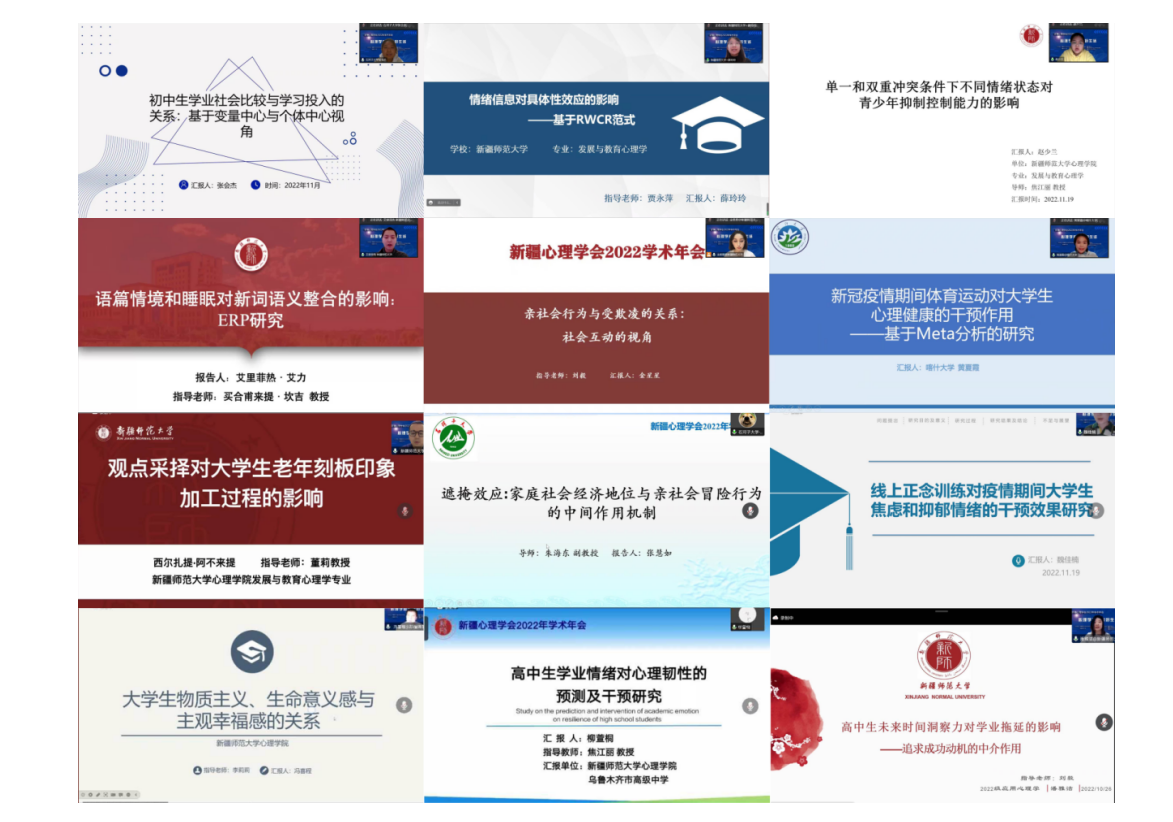 本次學術年會還設置了“社會心理與行為”“學習與認知心理”“人格與心理健康”三個分論壇以及兩組研究生論壇,吸引了全疆各大中專院校、科研院所心理學研究者、中小學心理學相關專業師生及相關從業人員的關注和投稿,論壇主辦單位根據選題的可行性、論證的邏輯性、結論的創新性等標準遴選出27篇文稿作會議報告。27篇文稿匯報領域覆蓋教師情緒體驗、在線教學效果、校園環境等影響個體心理行為,學生的學業投入、社會情感能力發展、親社會人格、閱讀障礙、校園霸凌、工作記憶等心理學前沿研究領域和熱點現實問題。參會者一致認為,學術報告的問題真、方法新、水平高,體現了我區心理學研究、人才培養所取得的重要進步和成果。