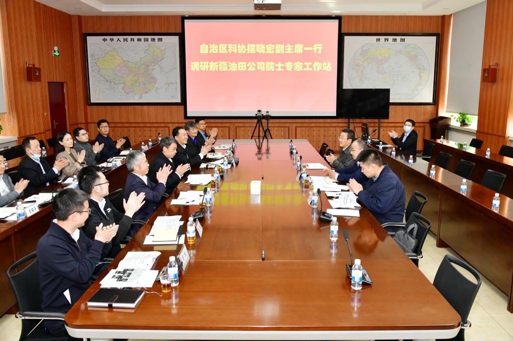 5月9日,自治區科協黨組成員、副主席擺曉宏一行赴新疆油田公司院士專家工作站,就院士專家工作站運行管理、平臺建設、人才培養、項目合作等情況進行調研。新疆油田臧傳貞副總經理、克拉瑪依市科協程顯勝常務副主席陪同調研。