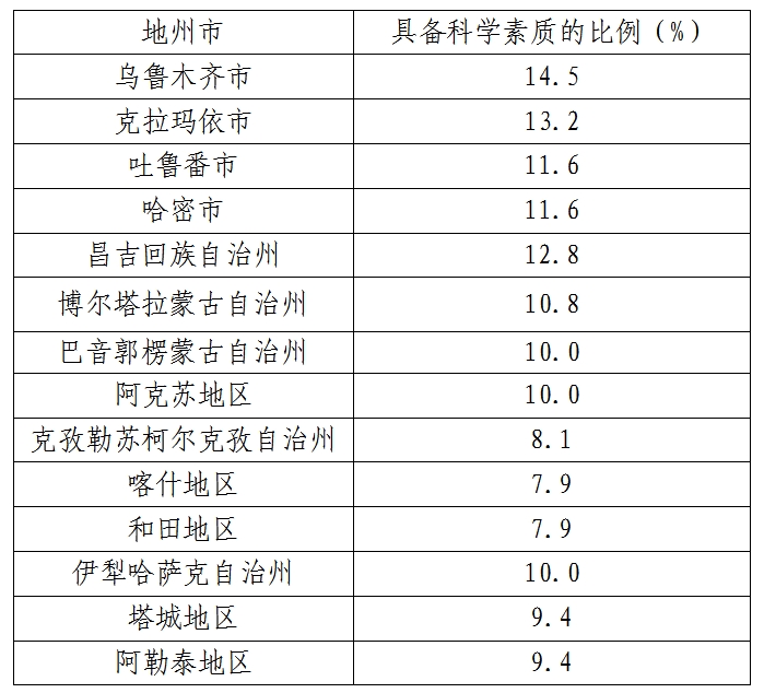 2023年新疆維吾爾自治區(qū)第十三次中國(guó)公民科學(xué)素質(zhì)抽樣調(diào)查結(jié)果公布