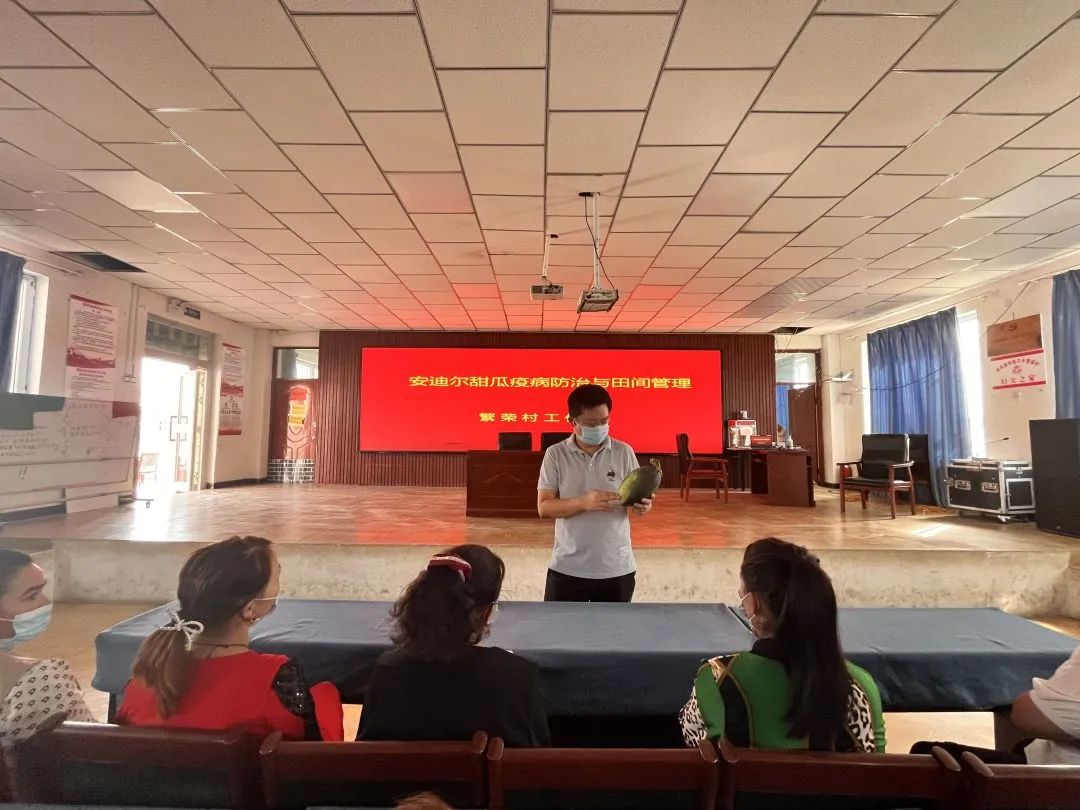 經(jīng)歷過這件事后,盛凱梳理歷年來甜瓜出現(xiàn)的各種病害,編制《安迪爾甜瓜疫病防治和田間管理指導(dǎo)手冊》。同時,積極邀請自治區(qū)農(nóng)科院、新疆農(nóng)業(yè)大學(xué)等院校專家到村針對土質(zhì)測量、整地定植、培育壯苗、植株管理、成熟度鑒別、病蟲害防治以及采收上市等關(guān)鍵技術(shù)問題開展系統(tǒng)性研究,引進(jìn)“瑪?shù)铝铡薄拔髦菝?5號”等甜瓜品種,采取“線上+線下”的方式,定期開展“安迪爾甜瓜提質(zhì)增效課堂”,為村民補(bǔ)齊短板弱項,解決了甜瓜品種老化、病蟲害、種植面積萎縮的狀況,多措并舉,繁榮村“安迪爾”甜瓜種植面積擴(kuò)大到2500畝,產(chǎn)量也有了較大提高。