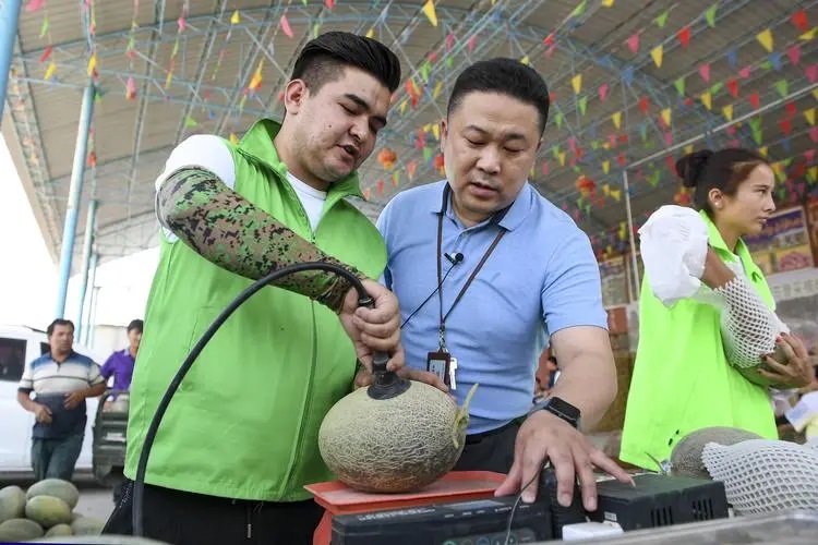為種出更多好瓜,瓜農充分科技技術,從種子消毒、有機施肥、整蔓打叉、一藤一瓜、采摘分級、裝箱冷鏈全流程追根溯源、精耕細作。如今,在巴楚縣從種植模式、銷售渠道、再到形成線上、線下的互動鏈接,“留香瓜”已經形成當地農民增收致富的主導產業。從種植上的提質增效,到線上、線下雙向銷售,“留香瓜”走出了大市場,不僅增加了農民收入,更帶來了當地農產品標準化生產的轉變,幫助了巴楚農村的產業發展。專業團隊流水線作業、就地預冷、全程冷鏈,越來越多的“留香瓜”走出巴楚,遠銷上海、山東等沿海發達城市。