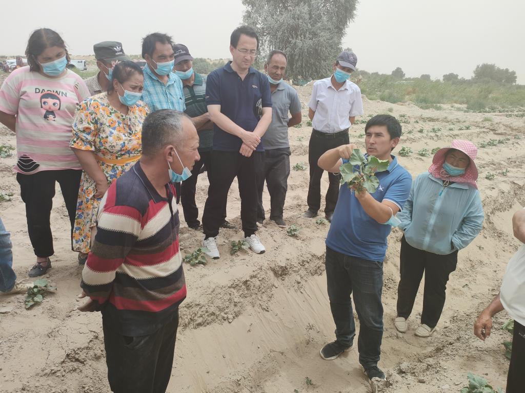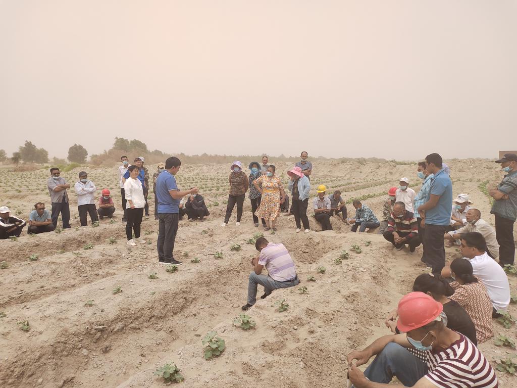 盡管當(dāng)時(shí)天氣炎熱,沙塵彌漫,但依然無(wú)法阻擋科技服務(wù)團(tuán)技術(shù)指導(dǎo)的服務(wù)熱情和農(nóng)民參加培訓(xùn)的積極性,服務(wù)團(tuán)隊(duì)顧不上吃飯、喝水,顧不上午休,馬不停蹄地又“轉(zhuǎn)戰(zhàn)”距繁榮村十幾公里的甜瓜地,手把手地教繁榮村的種植戶掌握合理的灌溉、施肥、病蟲(chóng)害防治等實(shí)用技巧,直至傍晚時(shí)分,一撥撥的農(nóng)民們才學(xué)有所獲、滿意地離開(kāi)。“這樣的培訓(xùn)亞克西,除了實(shí)用的種植技術(shù),還讓我學(xué)到了市場(chǎng)分析預(yù)測(cè)等方面的知識(shí),讓我的種植更具規(guī)范化、田間管理更具標(biāo)準(zhǔn)化,今年又是個(gè)豐收年。”種植45畝甜瓜的繁榮村種植大戶努爾買買提·尼亞孜笑著說(shuō)道。