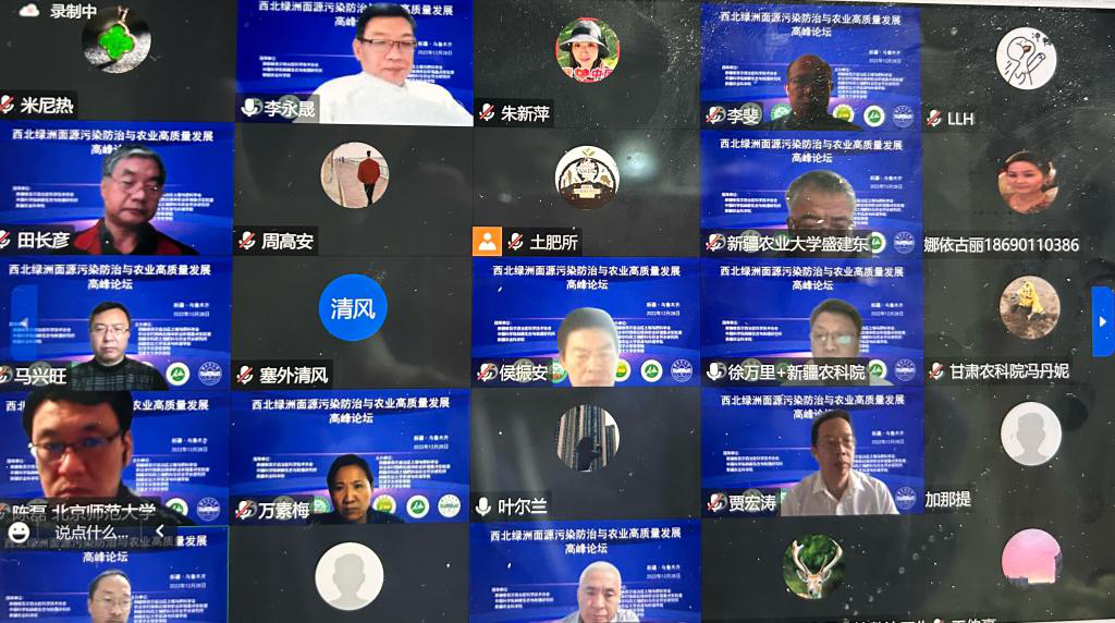 通過研討,明確干旱區(qū)綠洲面源污染防治方面的成績和不足,并提出適應(yīng)高質(zhì)量發(fā)展背景下綠洲面源污染防治的科學(xué)問題與戰(zhàn)略需求,為新疆面源污染防治領(lǐng)域的發(fā)展提供思路。 來自全國各地的300名專家通過云端展開學(xué)術(shù)討論,共享論壇盛宴。