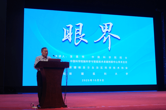 10月9日,由自治區(qū)科協(xié)主辦,新疆醫(yī)科大學(xué)承辦的2025年第十一期“眼界”講堂在新疆醫(yī)科大學(xué)文創(chuàng)中心舉行。本期講堂特邀中國科學(xué)院院士、中國科學(xué)院腦科學(xué)與智能技術(shù)卓越創(chuàng)新中心學(xué)術(shù)主任蒲慕明院士,以“腦科學(xué)與人工智能”為主題,為來自新疆醫(yī)科大學(xué)、新疆大學(xué)、新疆師范大學(xué)、新疆農(nóng)業(yè)大學(xué)等高校的1000余名師生帶來了一場精彩的學(xué)術(shù)報告。