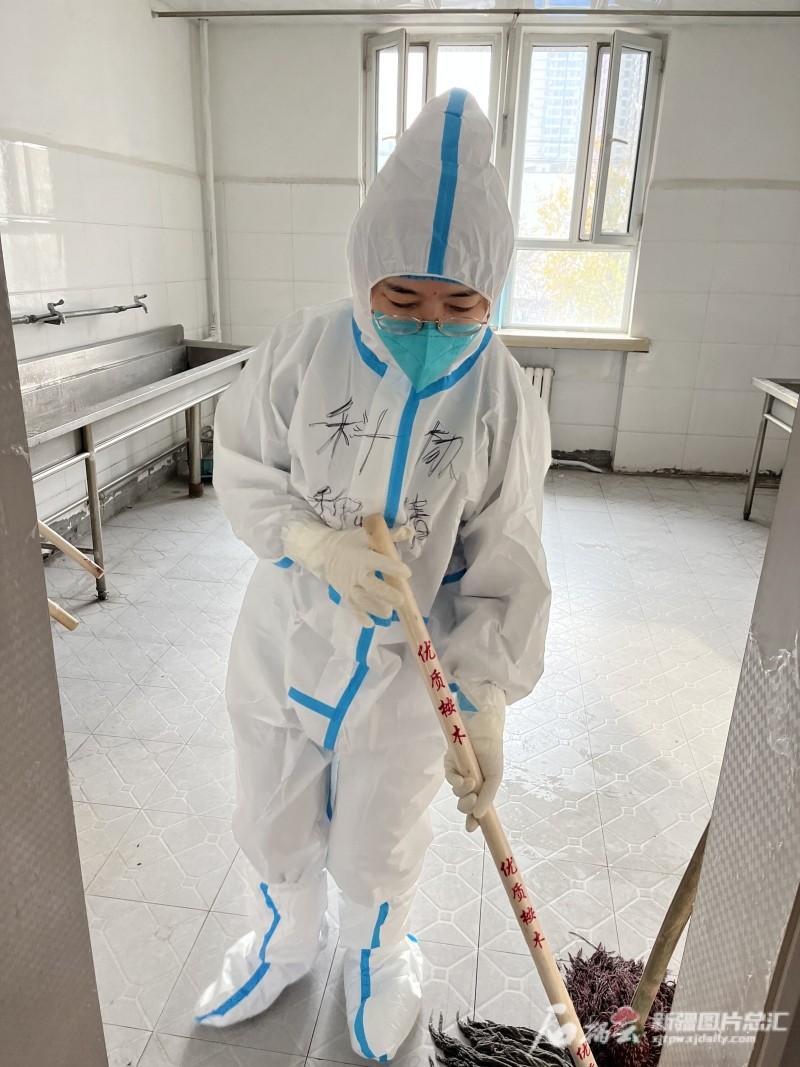 魏倩是新疆科普雜志社的財務人員,她下沉至烏魯木齊市天山區新泉街的一處隔離點,主要負責隔離點內的衛生保潔工作。她在工作中非常認真,以嚴謹、負責的態度完成每一天的工作任務,為集中隔離點啟動創造了干凈整潔的環境條件。
