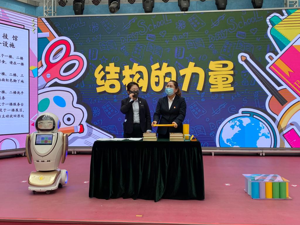 機(jī)器人輔導(dǎo)員的一項(xiàng)重要工作是與科技館科技輔導(dǎo)員在科普劇場(chǎng)共同表演科普實(shí)驗(yàn)《結(jié)構(gòu)的力量》,進(jìn)行“人機(jī)交互輔導(dǎo)”。實(shí)驗(yàn)過(guò)程中,科技館科技輔導(dǎo)員負(fù)責(zé)演示、操作,機(jī)器人輔導(dǎo)員輔助解釋、與臺(tái)下觀眾互動(dòng)問(wèn)答,這種新穎有趣的形式引得現(xiàn)場(chǎng)觀眾熱情高漲、踴躍參與。“孩子還是第一次看機(jī)器人給我們講實(shí)驗(yàn),很吸引人。”