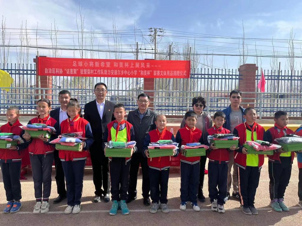 3月30日下午,自治區(qū)科協(xié)“訪惠聚”工作隊愛心捐助活動在安迪爾鄉(xiāng)中心小學(xué)的操場上進(jìn)行,中心小學(xué)的足球隊收到了他們心儀已久的禮物:足球、球服、球鞋以及部分訓(xùn)練器械。收到禮物的同學(xué)們歡欣雀躍,高興的在球場上奔跑慶祝。中心小學(xué)的足球隊將于近日前往民豐縣參加和田地區(qū)“和美杯”中小學(xué)足球聯(lián)賽。