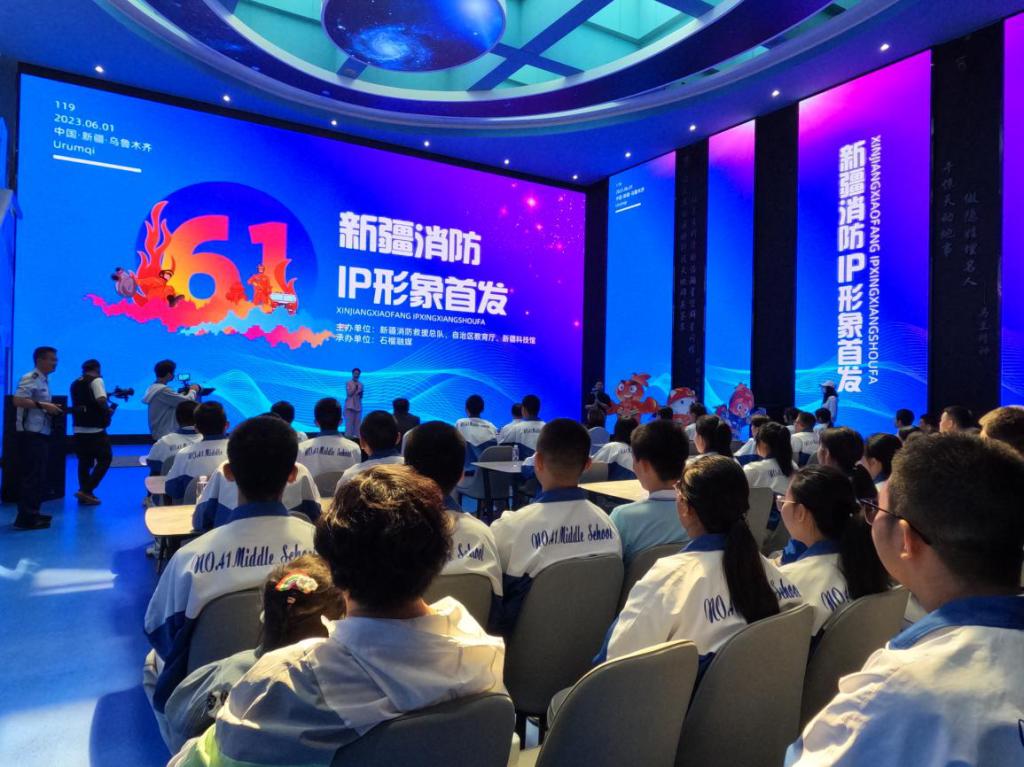 充滿儀式感的國際兒童節(jié)活動首先由新疆消防IP形象首發(fā)儀式拉開序幕,上午十一點三十分,伴隨著主持人清澈嘹亮的聲音,出席首發(fā)儀式活動的新疆消防救援總隊、自治區(qū)教育廳、新疆科技館的領(lǐng)導(dǎo)們和烏魯木齊市第41中學的63名學生已經(jīng)整齊落座,對即將精彩亮相的新疆消防IP形象充滿好奇和期待。當消防小姐姐逐一介紹“石榴俠”、“藍妹妹”、“雪小豹”的時候,在場的同學們沸騰了,他們高舉著雙手爭相涌向舞臺,要和可愛的IP形象們打卡互動。相信通過這樣的方式,“藍朋友們”勇敢、熱血、無私以及如同火焰般熾熱、純凈的美好品質(zhì)會悄悄在他們心里生根發(fā)芽。