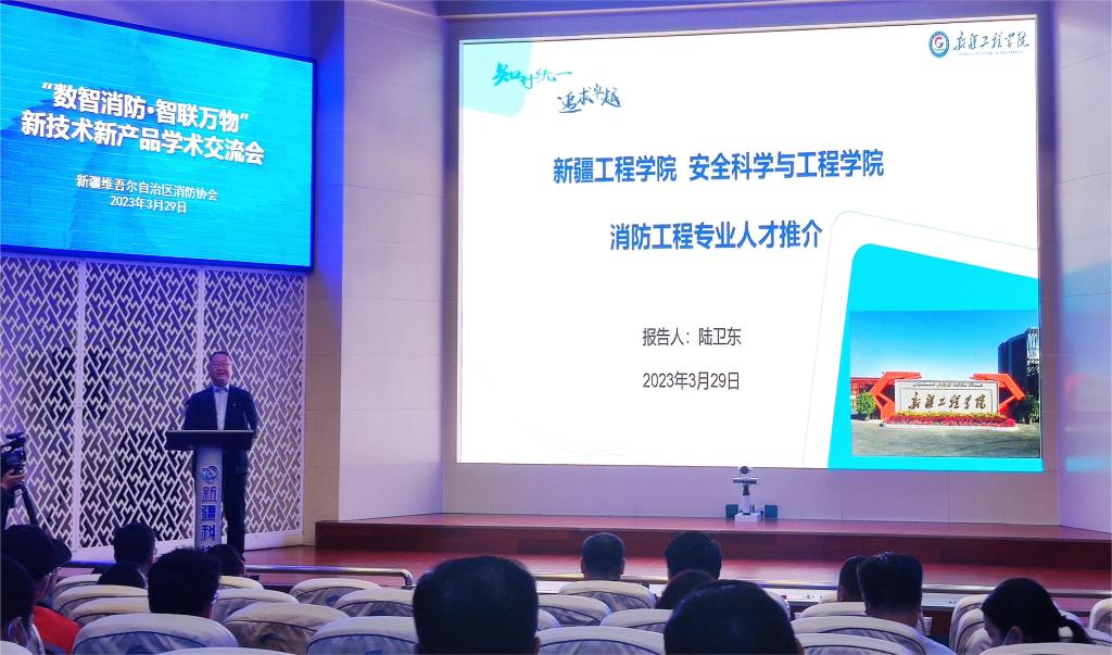 為推動(dòng)產(chǎn)業(yè)創(chuàng)新、培養(yǎng)科技人才和校企合作,學(xué)術(shù)研討交流會(huì)專門邀請(qǐng)了新疆工程學(xué)院安全科學(xué)與工程學(xué)院黨委書記陸衛(wèi)東介紹了新疆工程學(xué)院消防系等專業(yè)學(xué)科開展情況和科技人才資源,結(jié)合學(xué)院2023屆畢業(yè)生實(shí)習(xí)和就業(yè)工作進(jìn)行了專業(yè)化推介,為行業(yè)發(fā)展輸入源源不斷的新能量。