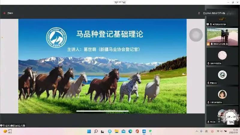 為推進現代馬產業健康穩步快速發展,提高馬產業人員的業務水平和技術能力,近期,新疆馬業協會通過騰訊會議在線直播的形式開展了馬匹外貌鑒定和馬品種登記基礎理論及具體登記流程等培訓。本次培訓人員大多為全疆各地畜牧站、保種場、基層養殖合作社工作人員和部分高校馬業在讀學生,培訓持續一天,共計97名馬業從業人員參與培訓。