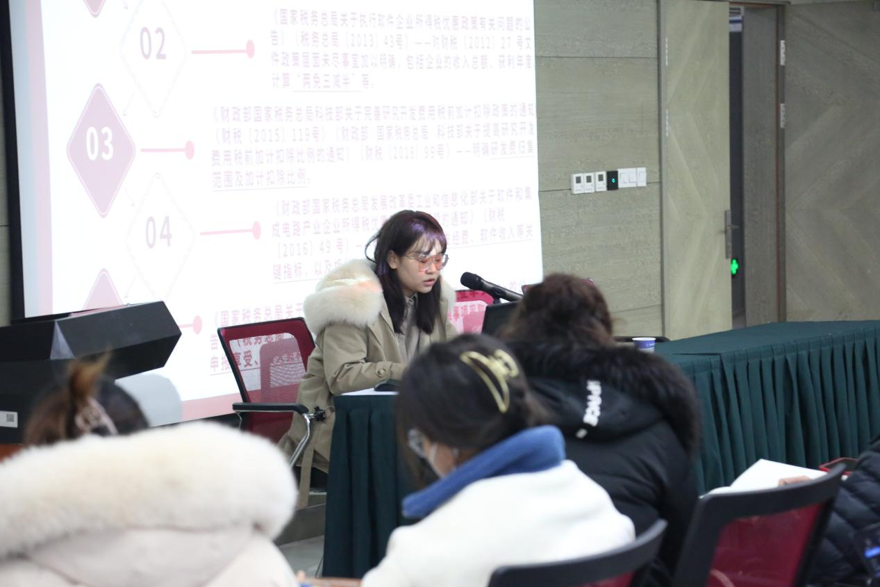 高新區技術產業開發區稅務局企業稅科副科長李霄詳細介紹了企業研發費用加計扣除相關國家政策和研發費加計扣除辦理流程,并重點從企業研發費用帳務處理的實操角度,詳細介紹了企業財務人員在做研發費用加計扣除操作細節和要點,結合實例將復雜繁瑣的財務表格進行劃分拆解,使參會人員一目了然,幫助企業在日常賬目操作過程中抓住工作重點。
