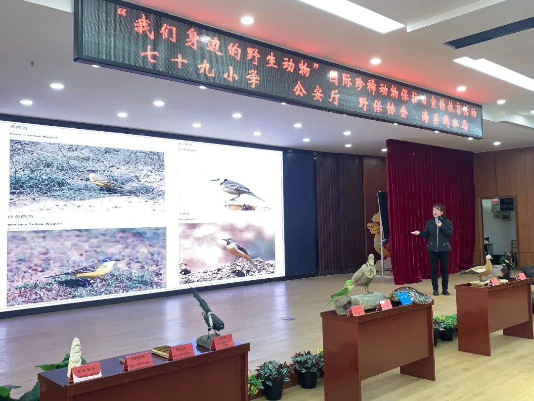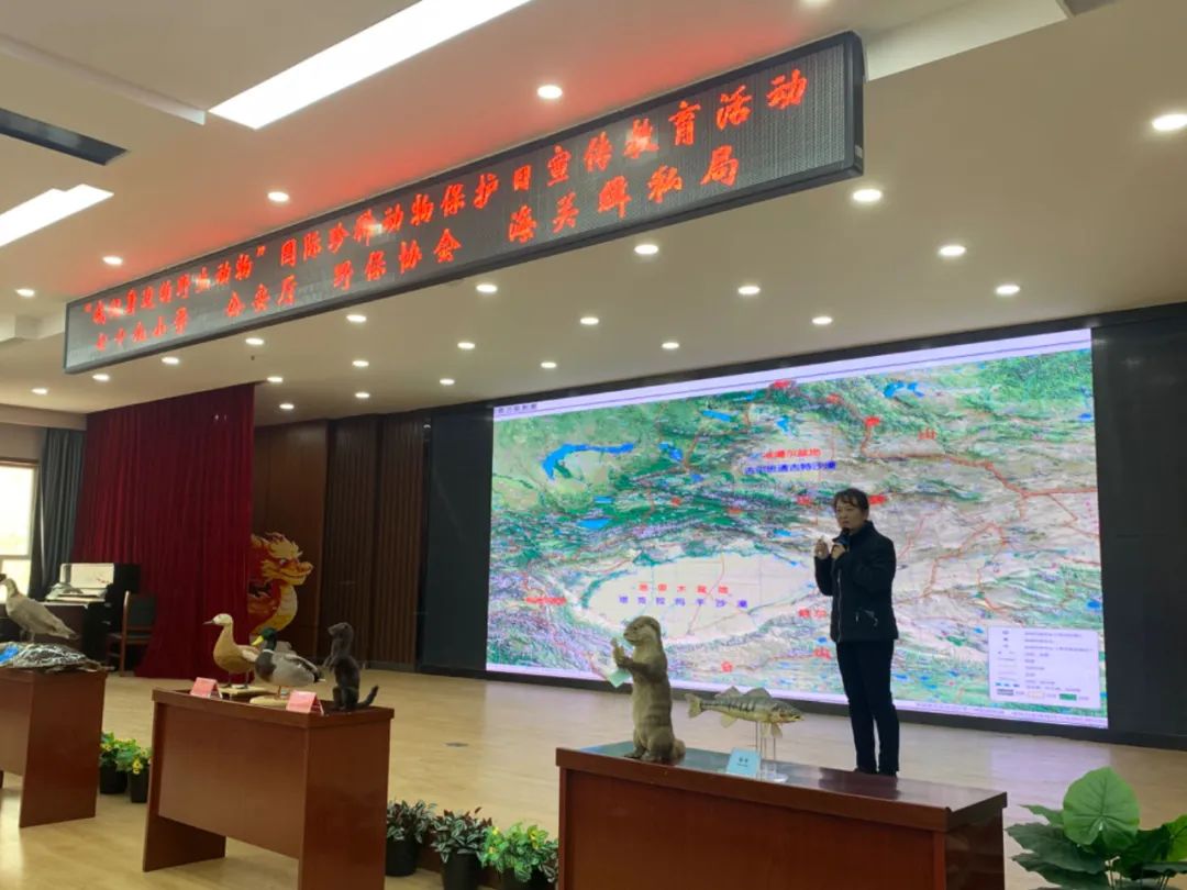 現(xiàn)場,協(xié)會夏詠老師用簡單易懂的語言,通過豐富多彩的圖片視頻講解了“我們身邊的野生動物”,圖文并茂地向同學(xué)們普及新疆常見鳥類,以及如何區(qū)分身邊的鳥類。在和學(xué)生們互問互答的過程中,學(xué)生們積極參與踴躍回答,現(xiàn)場氛圍更大程度地激發(fā)了學(xué)生們保護(hù)野生動物的熱情。科普課堂結(jié)束后,自治區(qū)公安廳食品藥品環(huán)境犯罪偵查局的工作人員帶學(xué)生們參觀了野生動物標(biāo)本,進(jìn)一步宣傳保護(hù)野生動植物的重要性。通過積極開展學(xué)校科普教育活動,普及自然科學(xué)知識,講述美麗新疆的自然故事,喚醒孩子們愛護(hù)動植物、保護(hù)周圍自然環(huán)境的熱情,加深強(qiáng)化學(xué)生保護(hù)意識。
