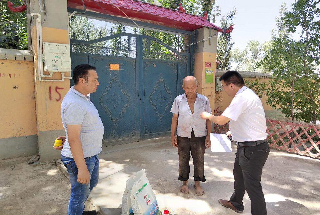 6月24日,新疆畜牧獸醫學會會員、新疆畜牧科學院駐色力布亞鎮拜什吐普(15)村工作隊隊長第一書記劉應進帶領“訪惠聚”工作隊員開展老黨員和貧困黨員走訪慰問活動。在這“七一”建黨節前夕,為老黨員和生活貧困的黨員送上了節日的問候,帶來了大米、面粉、食用油等生活用品,讓老黨員和困難黨員在生活上得到了幫扶、精神上得到了安慰,切身體會到了黨組織的關懷和溫暖,也拉近了駐村工作隊和村黨員的距離。