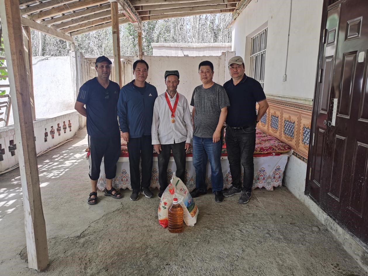 阿不來提·牙生老人遠遠看見工作隊后喜笑顏開,雙手接過劉書記手中的慰問品激動的說:“感謝黨,感謝工作隊一直以來對我的照顧。”阿不來提·牙生有個殘疾的兒子,工作隊每逢重要節日都會走訪慰問,給其兒子申請了低保和殘疾補貼,并指導阿布來提·牙生搞種養殖業,這從很大程度上解決他們家的困難問題。
