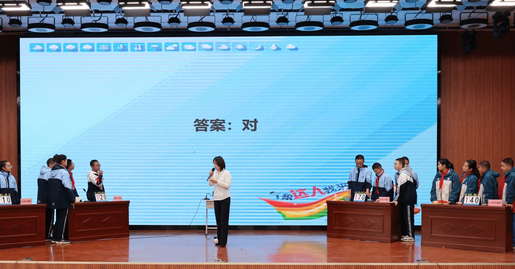 在氣象觀測小實踐環(huán)節(jié),同學們在氣象工作人員的指導下,依托手持校園氣象站和便攜式氣象站,現(xiàn)場觀測并記錄實時氣溫、過去24小時的最高和最低氣溫、氣壓、風向風速以及模擬降雪量等數(shù)據(jù),充當了小小氣象觀測員,對氣象觀測有了更加直觀深入地了解。氣象知識競賽環(huán)節(jié)更是緊張刺激,來自塔城地區(qū)三所學校的四支中學隊伍和七支小學隊伍分別進行了激烈的角逐。