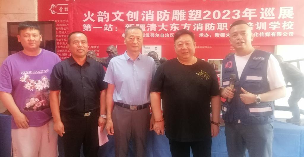 為深入開展消防科普活動,進(jìn)一步加強(qiáng)宣傳消防安全教育,突出展示消防文創(chuàng)的豐碩成果,2023年7月11日上午,由新疆消防協(xié)會主辦,新疆火韻精雕文化傳媒有限公司承辦的“火韻文創(chuàng)消防雕塑2023巡展”在新疆清大東方消防職業(yè)培訓(xùn)學(xué)校拉開帷幕。新疆消防協(xié)會會長張照雄、新疆清大東方消防職業(yè)培訓(xùn)學(xué)校校長張浩、新疆火韻精雕文化傳媒有限公司董事長張運參加啟動儀式,啟動儀式由新疆消防協(xié)會秘書長閆懷宣主持。